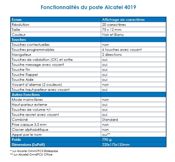 L'Alcatel 4019 a été conçu pour rendre les communications aussi audibles que possible, quelle que soit la source sonore. Il permet le passage simple et intuitif du combiné au casque ou en mode mains-libres.