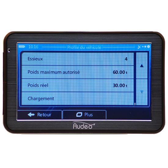 Dédiés à un usage exigeant, les GPS poids lourds Audeo sauront aussi se montrer simples d'utilisation avec un guidage précis des menus ultra intuitifs et un affichage clair et lisible.