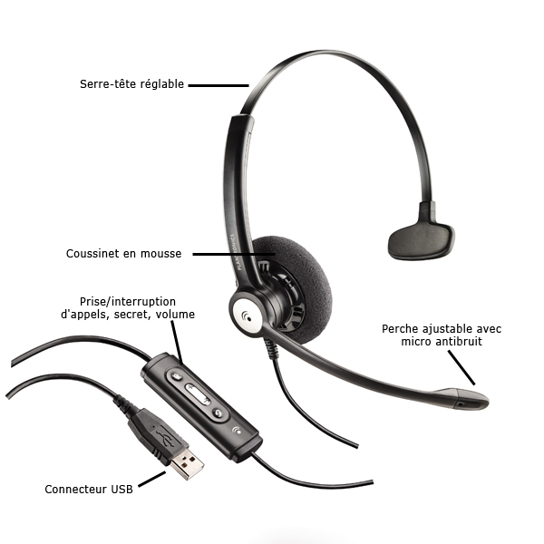 Plantronics Blackwire C610-M : casque filaire USB 1 écouteur, micro antibruit, conçu pour une utilisation intensive.