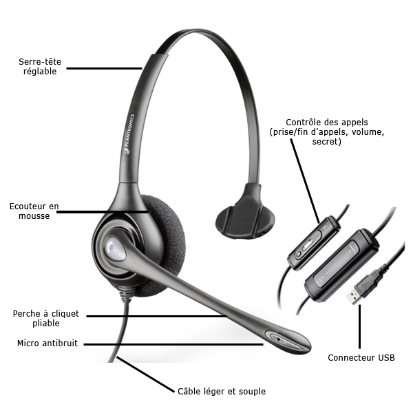 Plantronics Supra Plus Mono USB : casque filaire USB 1 écouteur, micro antibruit