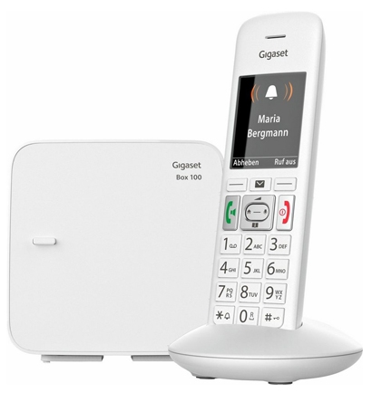 Le téléphone sans fil Gigaset E370 est équipé d'un grand écran couleur avec un affichage à gros caractères pour une grande lisibilité et d'un clavier à larges touches faciles à manipuler.