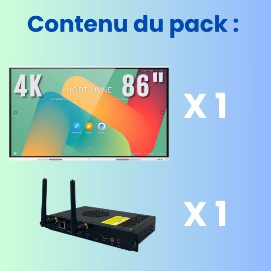 - Le mini PC au format OPS compatible avec l'écran. Il intègre un système d'exploitation Windows 11 IoT pour gérer votre écran interactif, comme votre PC personnel.