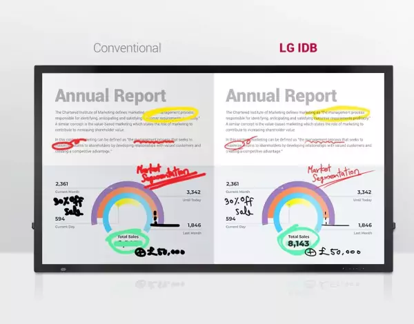 Toutefois, pour un partage sans fil, il est nécessaire d'installer l'application LG IDB DUO. L'application vous permet de charger le tableau blanc et de partager l'écran de votre smartphone sur l'écran et inversement.