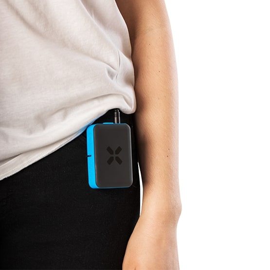 Le microphone de présentation pour Catchbox est sans fil et peut être placé à la ceinture ou autour du cou.