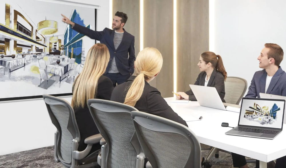 Ontworpen om het delen van inhoud tijdens vergaderingen gemakkelijker te maken, zijn draadloos InstaShow-presentatiesystemen van BenQ eenvoudig te gebruiken. Sluit de knop aan op uw computer en binnen enkele seconden bent u gekoppeld aan het scherm of de projector in uw vergaderruimte. Vervolgens kunt u met één druk op de knop uw scherm delen en uw presentatie starten.