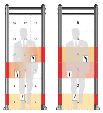 Deze doorloopmetaaldetector heeft 12 werkfrequenties voor immuniteit voor omgevingsinterferentie. De mogelijkheid om de gevoeligheid per sector te verminderen, maakt het mogelijk om persoonlijke bezittingen (bril, armband, riemgesp, horloge, enz.) te discrimineren en zo het aantal valse alarmen voor een snelle stroom van passages te verminderen.