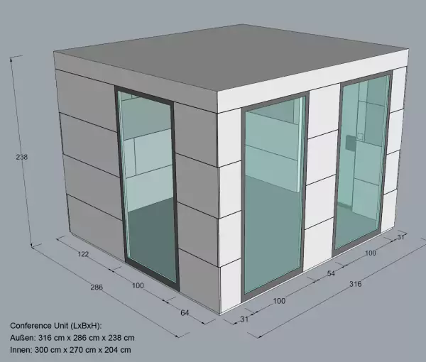 Omschrijving van de OfficeBricks akoestische conferentiecabine
