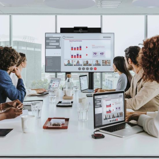 Profiteer van een pakket dat al speciaal voor uw vergaderruimte is ontworpen: snel te monteren, eenvoudig te gebruiken en vooral draadloos, waardoor uw ruimte voor video conference opgeruimd en schoon blijft.