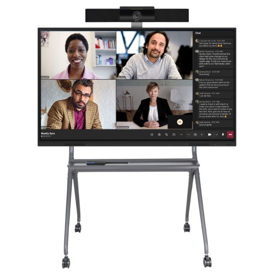- Een 55-inch touchscreen met rolstandaard (Het uiterlijk van de standaard kan variëren afhankelijk van de beschikbaarheid. Voor specifieke verzoeken (standaardhoogte, lage voet, enz.) kunt u contact opnemen met onze verkoopafdeling.);
