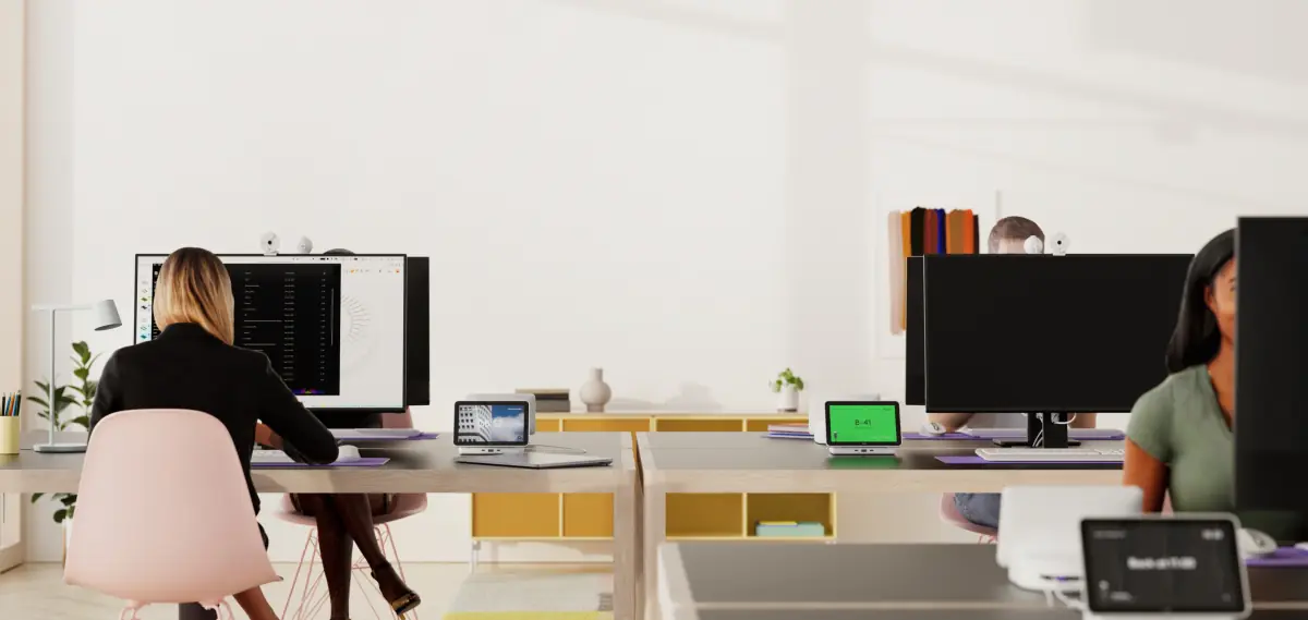 Met dit dockingstation kan elke medewerker een kantoor op afstand of op locatie reserveren. Het informeert ook over de beschikbaarheid van ruimtes . In één oogopslag weten medewerkers direct welk bureau vrij, bezet of gereserveerd is. Het dockingstation kan eenvoudig worden geïntegreerd en beheerd met Microsoft teams, Zoom Workspace-reservering of Logitech's eigen desktopreserveringsservice.