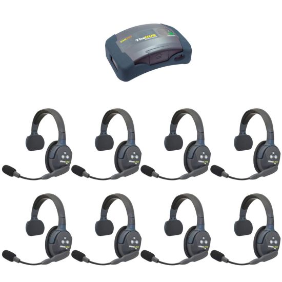 Het Eartec UltraLITE HD 8 pack is een pack bestaande uit 8 Eartec UltraLite HD Mono Slave intercom headsets en Hub. Dit pakket is bedoeld om u ononderbroken met meerdere mensen te laten praten dankzij de intercomfuncties . Uitgerust met DECT-technologie , zijn deze intercom-headsets full-duplex zodat u kunt converseren zonder op een PTT-knop te hoeven drukken.