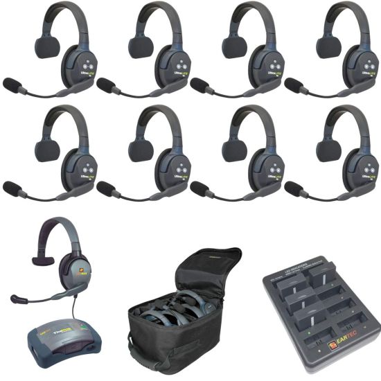 Het Eartec UltraLITE HD 9-pack is een pack bestaande uit 8 Eartec UltraLite HD Mono Slave intercom headsets, een bedrade headset Max4G Mono en een Hub. Dit pakket is bedoeld om u ononderbroken met meerdere mensen te laten praten dankzij de intercomfuncties . Uitgerust met DECT-technologie , zijn deze intercom-headsets full-duplex zodat u kunt praten zonder op een PTT-knop te hoeven drukken.