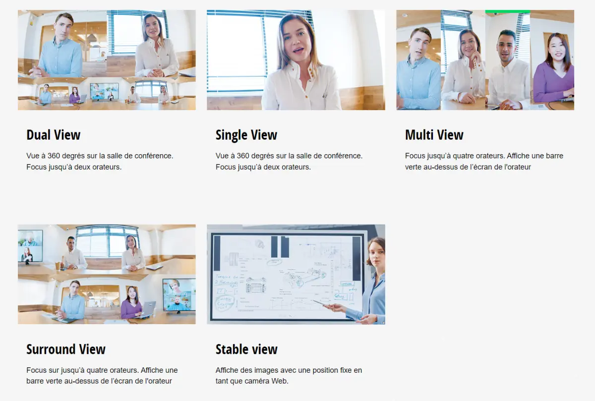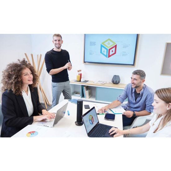 Door 4 camera's , 7 microfoons en een luidspreker te integreren, wordt hij via USB-C aangesloten op een PC of een Mac. Automatisch herkend door de computer, is het dan mogelijk om een video conference te starten vanaf elk platform: Microsoft Teams, Google Meet of Zoom .