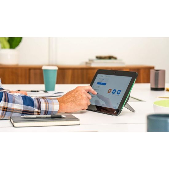 Beeldscherm touch 2 in 1 , de Poly TC10 kan worden gebruikt als reserveringsscherm voor vergaderruimtes , of als bedieningstablet voor een zelfstandige video conference kamer die werkt met ### 106 .