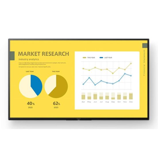 Sony biedt een voordelig 50-inch scherm , ontworpen voor verschillende professionele configuraties. Uitgerust met een resolutie UHD 4K en een helderheid van 350 candela/m² , biedt dit diagonale scherm van 127 cm een goede leesbaarheid, waar het zich ook bevindt.