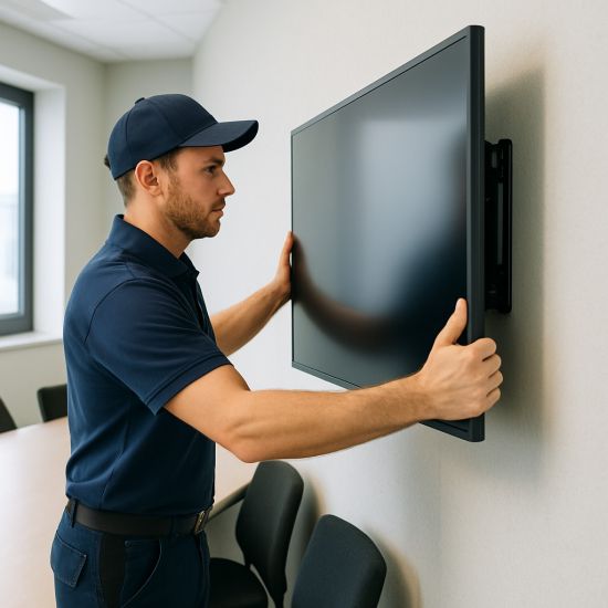 Een ultraplatte, discrete en stevige houder voor uw professionele schermen.