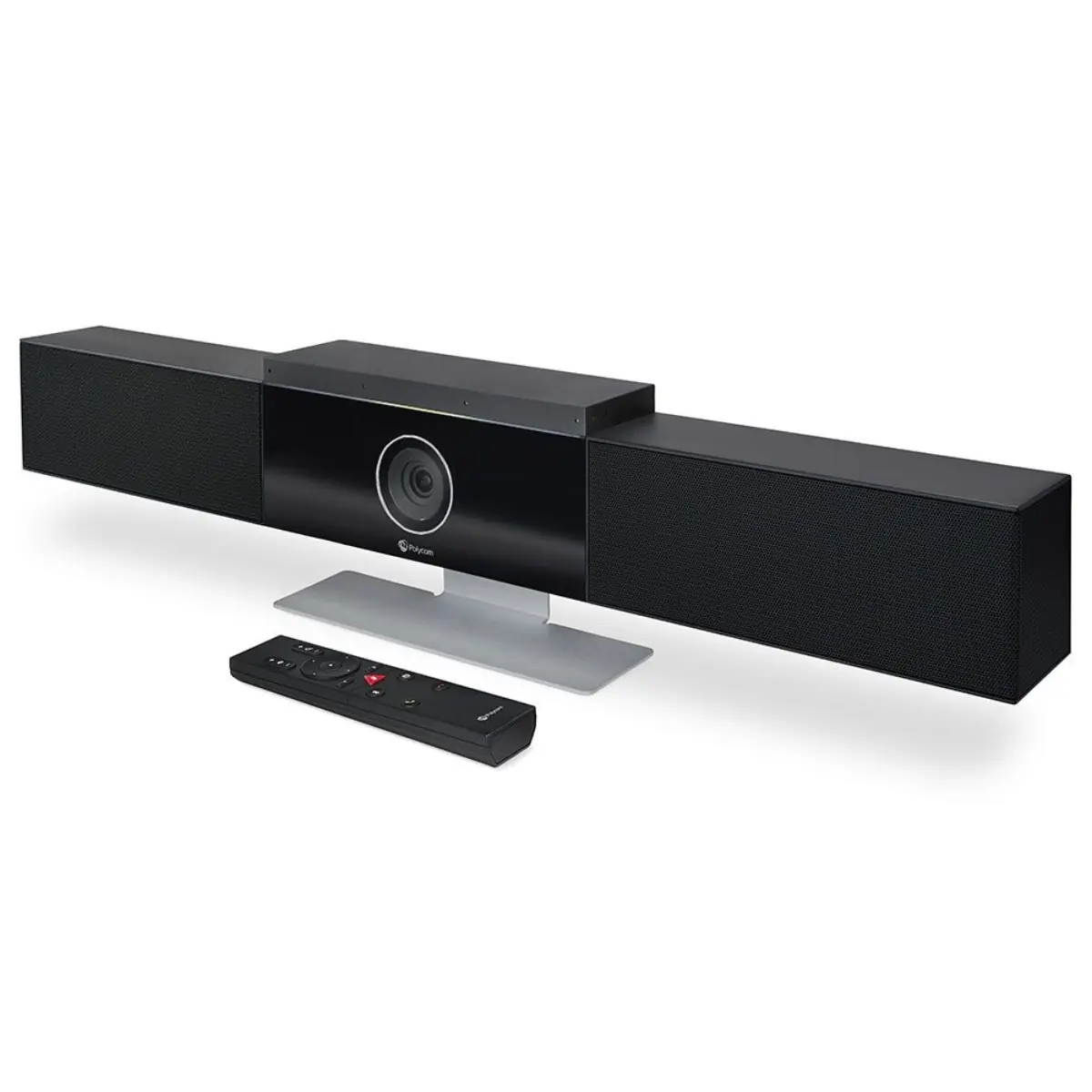 - De soundbar Polycom Studio inclusief microfoons en groothoekwebcam met speaker tracking