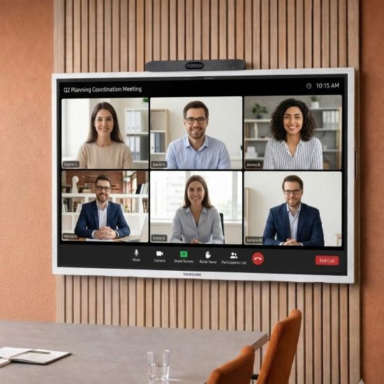 Bespaar tijd en verlaag uw reiskosten met het gebruiksklare Samsung-Poly videoconferentiepakket.
