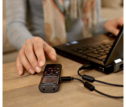 Doté d'une connexion USB, l'Olympus VN-713PC permet l'archivage de vos enregistrements sur PC ou Mac ou le transfert de fichiers par e-mail.