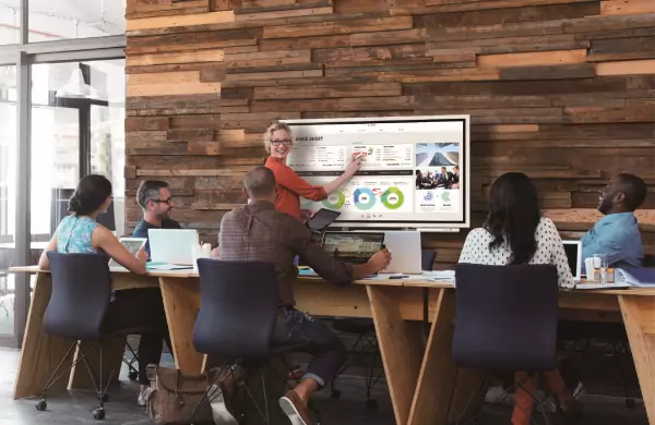Le tableau blanc interactif Samsung Flip 2 Paperboard Digital 55 pouces est un écran de résolution 4K. Outil collaboratif, vous pouvez projeter une image (celle de votre visioconférence grâce au Polycom) ou travailler dessus indépendamment. Vous naviguez sur internet, afficher l'écran de votre choix ou partagez vos présentations.