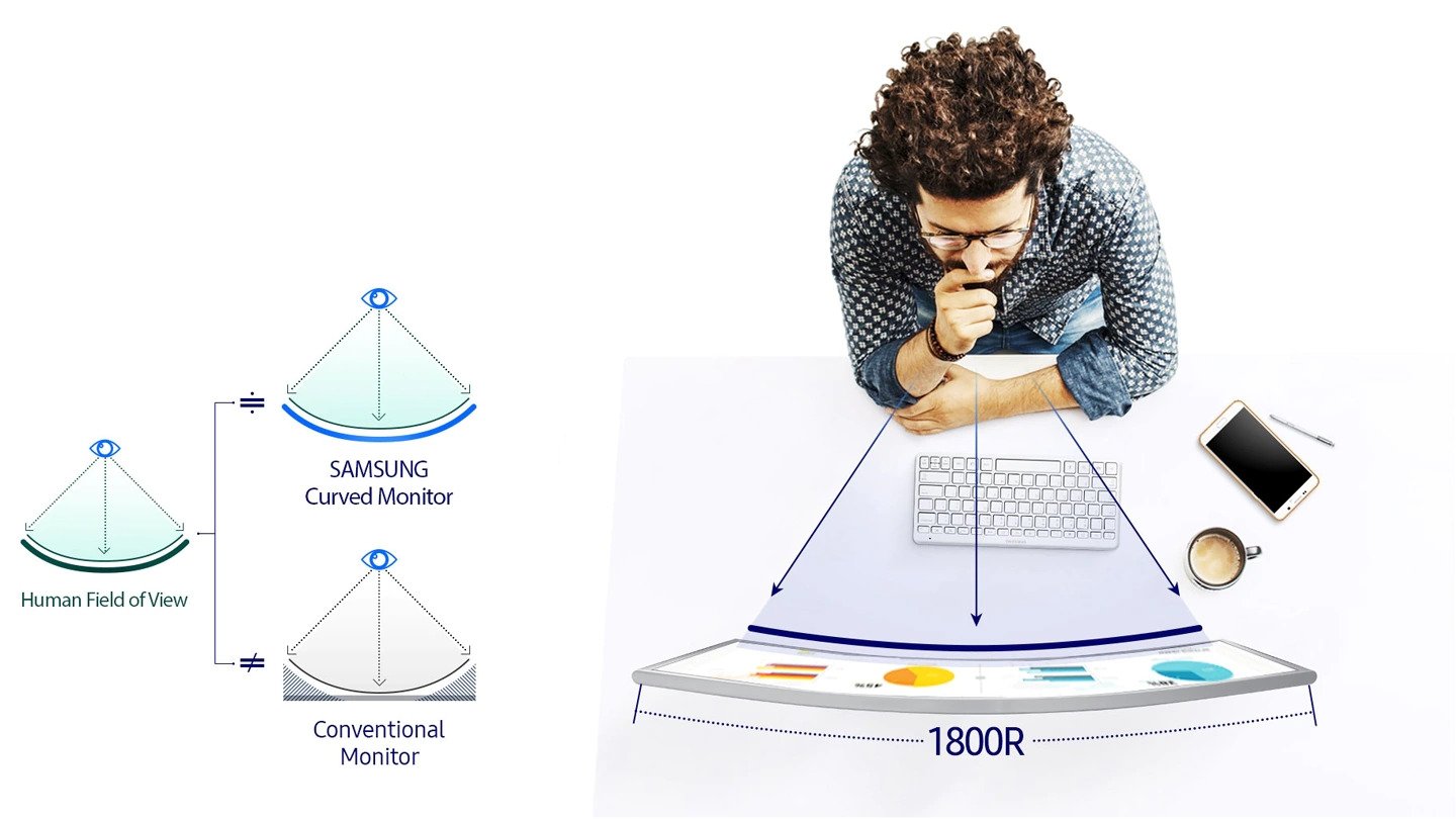 Design et élégant, l'écran C32F391F de Samsung est fin (11.9 mm), permettant de réduire l'espace que le moniteur prend sur votre espace de travail.