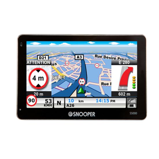 Le Snooper CC5000 est un GPS Europe (41 pays) conçu pour les camping-cars doté d'un écran large 5 pouces (13 cm de diagonale) qui calcule l'itinéraire adapté en fonction des dimensions et du poids indiqués par le chauffeur. Il suffit donc de renseigner le gabarit de votre véhicule pour être guidé par la route adaptée (exclusion des ponts bas, routes trop étroites, routes limitées au tonnage...).