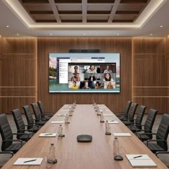 Ecran interactif 65" avec caméras 50 Mpx, micros avec portée de 15m et haut-parleurs stéréo. Lancez la visio depuis votre PC ou directement via l'écran.