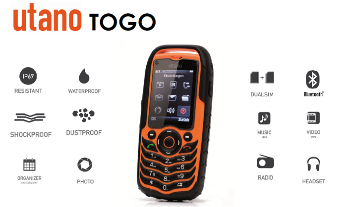 Utano TOGO : mobile IP67, double SIM, vibreur